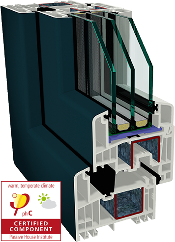 Não se desenvolve um sistema com as melhores propriedades em isolamento térmico por acidente, é o resultado de um trabalho de desenvolvimento orientado para um objetivo. O resultado deu-nos razão. Numerosos cálculos demonstraram excelentes valores de isolamento térmico. Inicialmente, o objetivo consistia em alcançar um índice de isolamento térmico Uf - 0,92 W/m²K na combinação convencional com aço, e alcançar assim a aptidão para uma casa passiva. Este objetivo foi alcançado através da soma de detalhes inovadores na concretização do sistema.